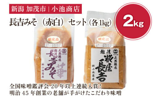 【先行予約】長吉みそ(赤白)セット 2kg《糀屋長吉みそ(白)・越後長吉みそ 華 (赤)各1kg》(2025年10月上旬から順次発送)【農林水産大臣賞受賞】自然発酵の味噌 味噌 保存料不使用 創業100年以上の老舗 長期熟成 加茂市 小池商店