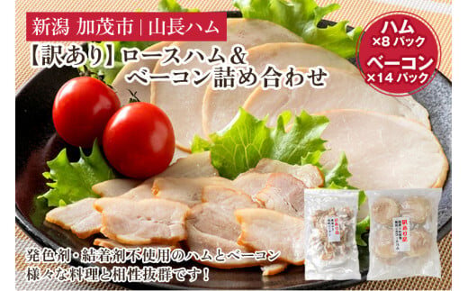 【訳あり】無塩せきロースハムと塩糀ベーコンの詰め合わせセット 《ハム:75g×8パック入り》《ベーコン:30g×14パック入り》 冷凍 ベーコン 肉 豚肉 豚バラ 豚ロース セット ワケアリ 訳アリ 規格外品 小分けパック 加茂市 山長ハム