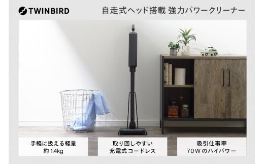 ツインバード コードレススティック型クリーナーセット (TC-5264S1B) スタンド 紙パック1.5年分付属