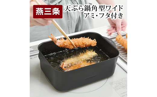天ぷら鍋角型ワイド アミ・フタ付 スクエア型【 IH対応 ガス対応 キッチンツール キッチン用品 調理器具 調理用品 アーネスト 揚げ物 フライ 唐揚げ 日本製 燕三条製 】 FC010270