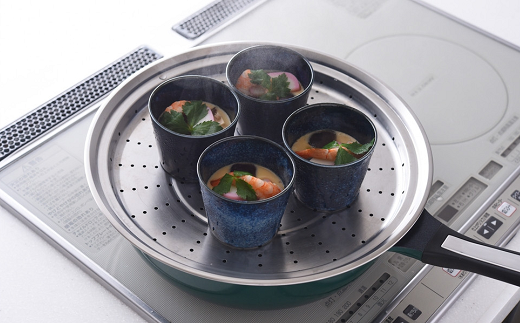 ●お手持ちのフライパンや鍋にのせるだけで、本格的な蒸し料理ができるステンレス製のスチーマー。