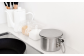 【仕様】 容器本体: 全長19×全幅14.5×高さ10cm、内径12.5×深さ9.5cm、底厚0.4mm、重量310g 、満水容量1.1L、適正容量0.6L 材質: ステンレス鋼、ナイロン |