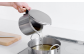●蓋の開口部が大きく開くため、フライパンの油を入れすぎた時など手を離さずにそのまま油を戻すこともできます。