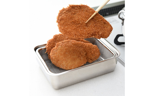 角バット本体: 幅22×奥行16.5×高さ6cm、重量190g、容量1600cc 蓋: 重量70g ザル: 幅20.5×奥行15×高さ5.5cm、重量115g 材質: 角バット、ザル/ステンレス、蓋/ポリエチレン |