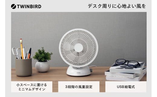 ツインバード USB給電式デスクファン (EF-4984W)【心地よい風を、好きなだけ!】