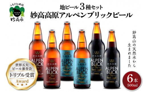 世界五大ビール審査会でトリプル受賞!妙高高原アルペンブリックビール3種ギフトセット(500ml×6本)【新潟県妙高市】