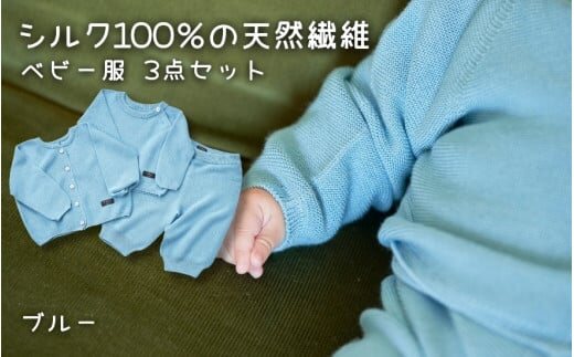 ベビー服 80センチ ( ブルー ) シルク100% きみとずっとニット 3点セット(セーター / カーディガン / パンツ)お肌にやさしい | 赤ちゃん ベビー 服 プレゼント ギフト 新潟県 五泉市 株式会社ルック