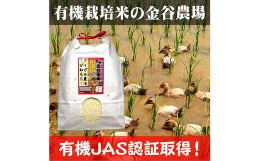 令和6年産 新潟県産アイガモ農法JAS有機栽培米こがねもち 白米3kg もち米 オーガニック 新潟
