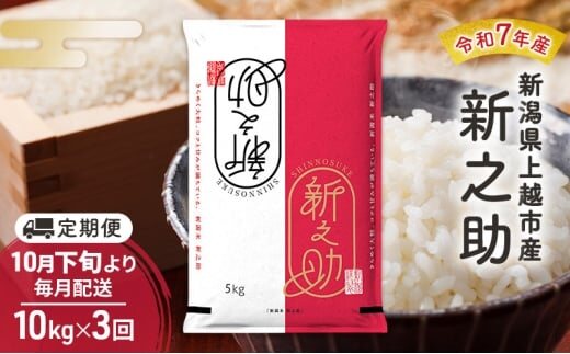 【(定期便|毎月配送|計3回))10月下旬より順次出荷】令和7年産 新潟県 上越市産 新之助 10kg 白米×3回 定期便