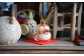 透明のガラスのお餅にみかん(橙)が乗っている形、みかんが取れる様になっていてそこからお米を入れます。
