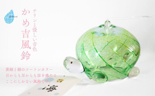 <手づくり>かめ吉風鈴 ガラス細工 吊り下げ 飾り 新潟県 弥彦村_かめ カメ 手作り ハンドメイド 風鈴 ふうりん 和の音色 夏の音色 おしゃれ 綺麗 ガラス製品【1440935】