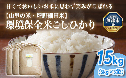 山の湧き水 寒暖差 山里 山里の米・坪野米 R7年産 環境保全米こしひかり 15kg ※北海道・沖縄・離島への配送不可 ※2025年9月下旬~2025年10月中旬頃に順次発送予定
