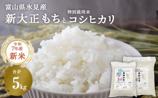〈令和7年産〉富山県氷見産 新大正もち(3kg)と特別栽培米 コシヒカリ(2kg)のセット <2025年10月中旬以降順次発送> | お米 白米 精米 氷見 富山 米 国産 特別栽培 エコファーマー 数量限定 コシヒカリ こしひかり 人気 お取り寄せ 減農薬 減化学肥料 安心 安全 環境にやさしい 農家直送 天神の里 餅 米 もち米 おこわ 新大正糯 希少 品種