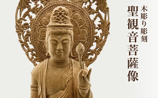 【木彫り彫刻】聖観音菩薩像 | 彫刻家 木製 手作り 手彫り 職人 木像 仏 置物 工芸品 富山 氷見