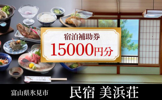 『民宿美浜荘』宿泊補助券15,000円分◆富山 氷見 宿泊 旅行 観光 チケット クーポン 旅行券 補助券 海が目の前 海水浴 宿泊券 海鮮