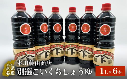 本川藤由商店 別選こいくちしょうゆ 1L×6本 富山県 氷見市 醤油 調味料 濃口 しょうゆ
