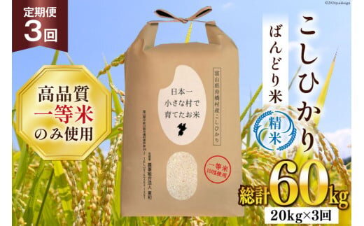 【3ヶ月定期便】【一等米100%】ばんどり米(コシヒカリ)精米 20kg(5kg×4袋) [農事組合法人東和 富山県 舟橋村 57050227] お米 白米 美味しい こしひかり 富山 農家