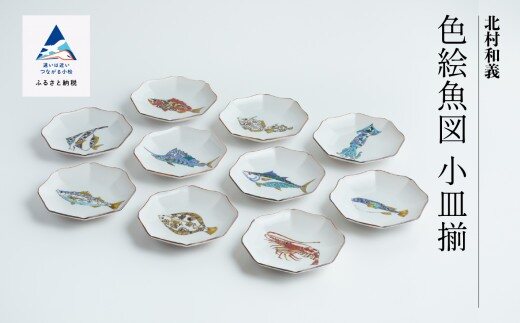 九谷焼「 色絵魚図 小皿揃 」 北村和義