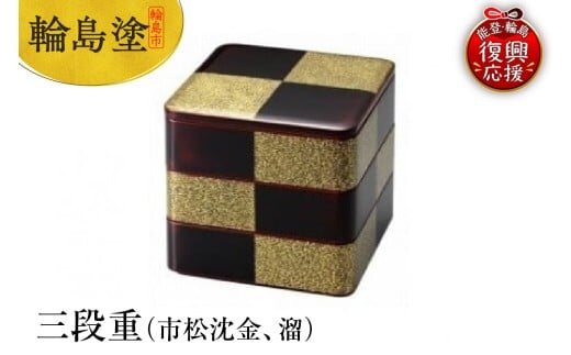 たて約20cm×よこ約20cm×高さ約20cmの輪島塗の三段重です。