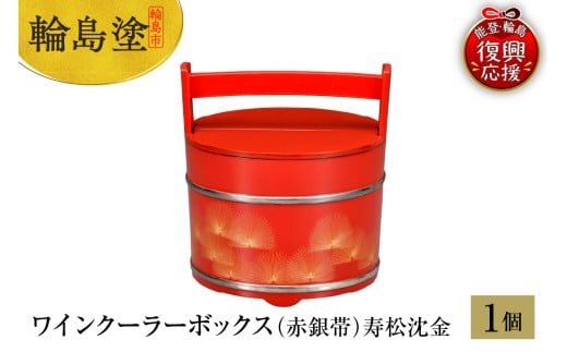 輪島塗 ワインクーラーボックス(赤銀帯)寿松沈金