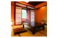 食事会場となる築100年の古民家を移築した囲炉裏処は、大きな梁や漆塗りの赤い帯戸が特徴的な贅沢なケヤキ作り。