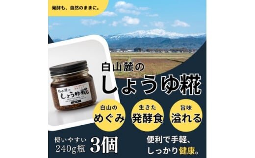 白山麓のしょうゆ糀 3個 ★生きた発酵食の万能調味料 ★手軽で便利、しっかり健康。★レシピ付【1383216】