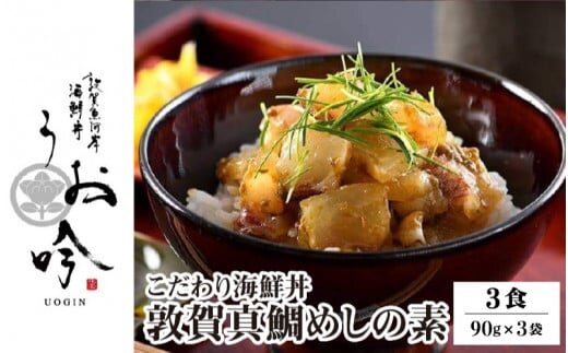 海鮮 ご飯にのせるだけ!手間なし こだわり海鮮丼「敦賀真鯛めしの素 3食」(1袋 90g)【冷凍 お取り寄せ マダイ 敦賀湾 グルメ 敦賀 海鮮 丼 贈答 ギフト 小分け 便利 簡単 豪華 お中元 ギフト 贈り物 プレゼント うお吟】[047-b031]