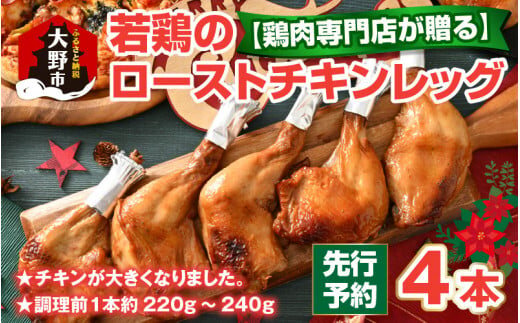 【クリスマス先行予約】【鶏肉専門店が贈る】若鶏の ローストチキン レッグ 4本 セット【12月1日~20日にお届け】