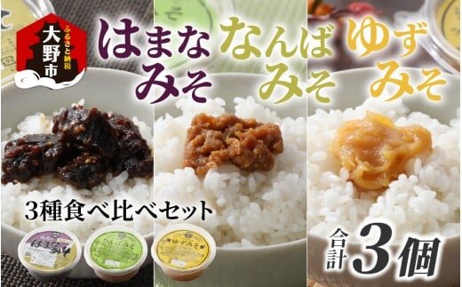 【先行予約】越前大野 山元醤油の「はまなみそ」+「なんばみそ」+「ゆずみそ」計3個【3種食べ比べセット】【2025年10月初旬より順次発送】