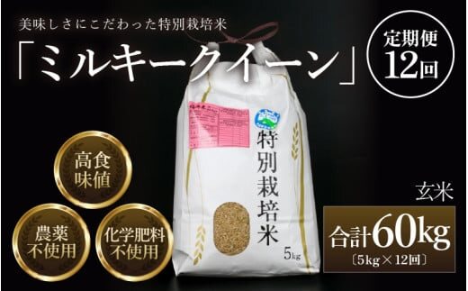 【令和7年産】 <12ヶ月連続お届け> 特別栽培米 ミルキークイーン 玄米5kg×12回 (計60kg) |