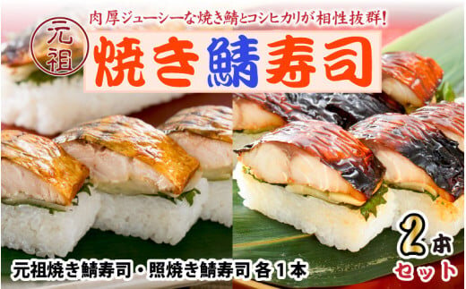 元祖焼き鯖寿司2本セット!「元祖焼き鯖寿司」「照焼き鯖寿司」 ~家族が喜ぶ手土産~【名物 ジューシー 焼きさば 押し寿司 さば寿司 すし こしひかり 贈答 ギフト お土産 大人気 食べ比べ】 [A-0568]