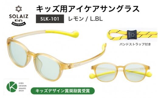 目元をケアするキッズ用サングラス『SOLAIZ Kid's』SLK-101 レモン/L.BLレンズ ウェリントンモデル(バンドストラップ付き)1本 [C-17207_05]
