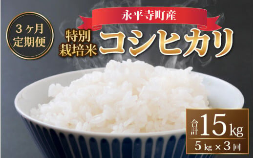 【先行予約】【3ヶ月定期便】【白米】令和7年度産 永平寺町産 農薬不使用・化学肥料不使用 特別栽培米 コシヒカリ 5kg×3ヶ月(計15kg)【10月上旬より順次発送開始予定】5キロ 5kg 米 米 お米 コメ 送料無料 こしひかり 福井[E-033014] 米定期便 定期便 頒布会
