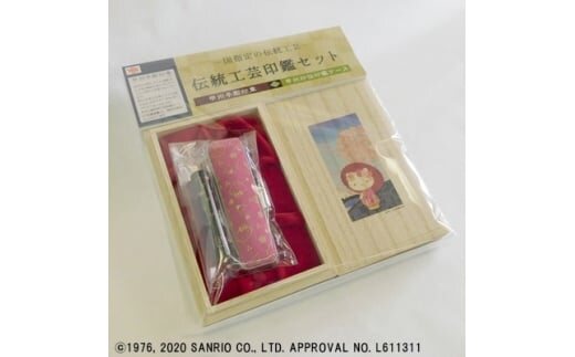 山梨県の伝統工芸である印章彫りは、文久年間に水晶をてん刻したことから始まったといわれ、全国でも有数の産地です。伝統の技と、やまなし観光ナビゲーターのハローキティのコラボで誕生した、甲州手彫印章と甲州印伝印鑑ケースのセットをお届けします。甲州手彫印章には伝統マークの「伝統証紙」と検査合格証が付いております。