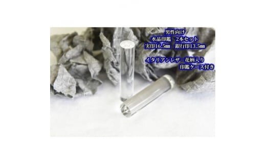 手彫り職人が彫った水晶印鑑実印16.5mm・銀行印13.5mmの2本セット花柄入りケース(男性向け)【1312002】