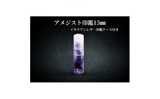 手彫り職人が彫ったアメジスト印鑑15mmイタリアンレザ-印鑑ケース付き【1369187】