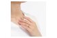 指輪のV字のデザインが指をスッキリとした印象にみせ、フラワーデザインのダイヤモンドが可愛らしさを演出します。