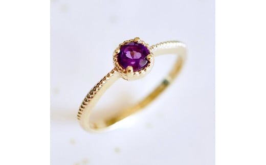 デザインは上質なアメシストを一粒シンプルにセッティングし、繊細なミルで囲みました。