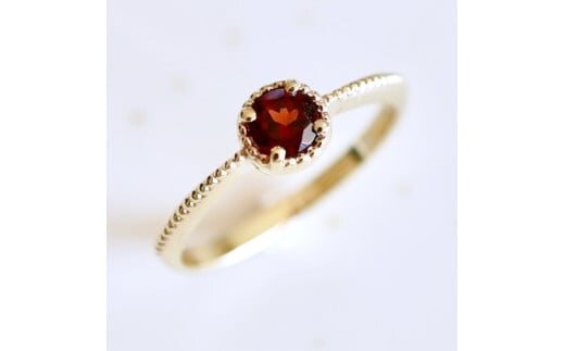 デザインは上質なガーネットを一粒シンプルにセッティングし、繊細なミルで囲みました。