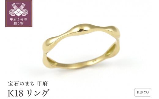 K18イエローゴールドの地金のみの指輪です。つややかな地金が波打つデザインで、シンプルながら可愛らしさもあります。お手持ちの指輪との重ね付けもおすすめです。幅広いコーディネイトに活躍します。ゴールドならではの美しい光沢をご堪能ください。