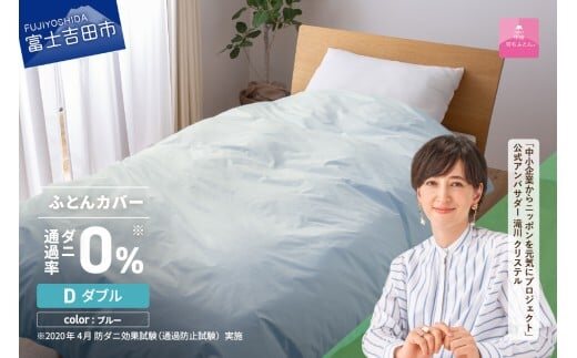 【甲州羽毛ふとん】ダニ通過率0%掛ふとんカバー ブルー(ダブル)