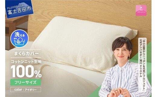【甲州羽毛ふとん】プレミアムコットンニットまくらカバー(アイボリー)