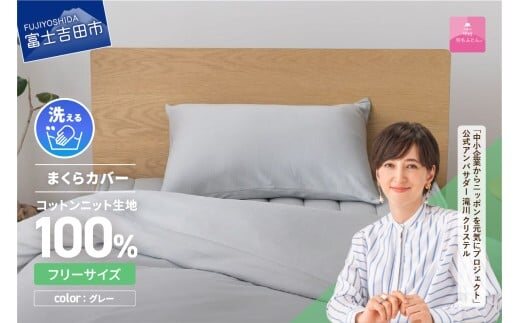 【甲州羽毛ふとん】プレミアムコットンニットまくらカバー(グレー)