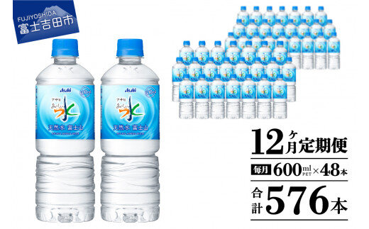 水 定期便 【12か月お届け】「アサヒおいしい水」天然水富士山 2箱(48本入)PET600ml 12回 水定期便 ミネラルウォーター 毎月 天然水 飲料水 山梨 富士吉田
