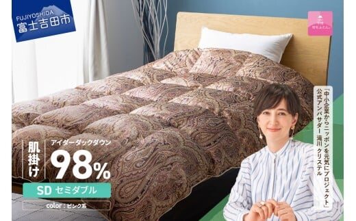 【甲州羽毛ふとん】肌掛シルクプリント手選別アイダーダウン(セミダブル) ピンク系