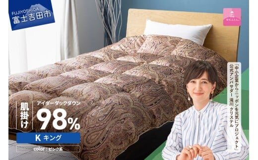 【甲州羽毛ふとん】肌掛シルクプリント手選別アイダーダウン(キング) ピンク系