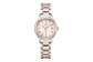 文字板12時、6時、9時位置には、差し込む光をイメージして、ひし形と丸形の2種のカットパーツをセッティング。ウォームゴールドの輝きがフェミニンな優しさを演出します。