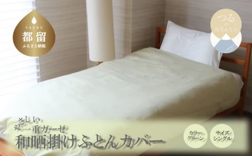 一重ガーゼやさしい和晒掛けふとんカバー シングルサイズ グリーン ガーゼ生地 綿100% 洗える