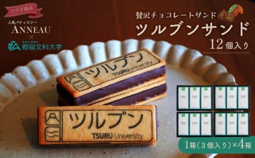 ツルブンサンド12個入(チョコレート菓子)| 都留文科大学 コラボ ミルクチョコレート ガナッシュ チョコレート ナッツ サクサク クッキー クッキーサンド シンボルマーク