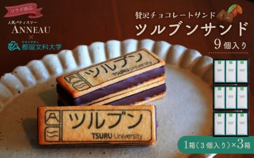 ツルブンサンド9個入(チョコレート菓子)| 都留文科大学 コラボ ミルクチョコレート ガナッシュ チョコレート ナッツ サクサク クッキー クッキーサンド シンボルマーク